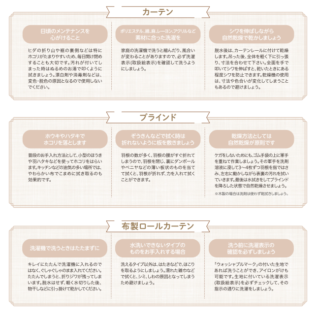 カーテン・ブラインド・ロールカーテンのお手入れ方法